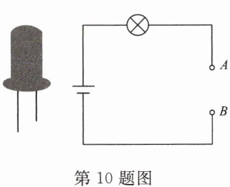 10. 发光二极管(简称LED)及其电路如图所示,当电流从较长的引脚流入时,发光二极管和小灯泡都发光;当电流从较短的引脚流入时,发光二极管和小灯泡都不发光。根据上述实验现象判断,两种情况下LED的电阻______(选填“相同”或“不相同”)。其额定电压通常都比较小,在家庭电路中需要与保护电阻______(选填“串联”或“并联”)才能正常工作。