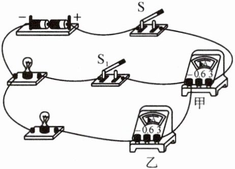 11. 用如图所示电路研究并联电路电流特点,电源电压保持不变,先同时闭合开关S和$S_1$,两灯均发光,观察并记录电流表示数后,断开开关$S_1$,此时( )。