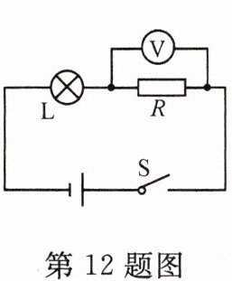12. 如图,电路中闭合开关S,灯L不亮,电压表有示数。除灯L和电阻R外,其余元件均完好。
