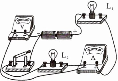 2. 小强在做“探究串联电路中电流、电压的特点”实验时,连接的实物电路如图所示。当开关闭合时,发现灯L₁不亮,灯L₂亮,电流表和电压表均有示数,则出现此故障的原因可能是( )。