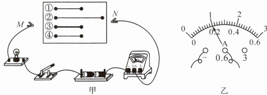 (1)连接电路时,开关应处于______状态,在M、N之间分别接上不同的导体,闭合开关后,通过观察______来比较导体电阻的大小。某次电流表的示数如图乙所示,读数为______A。
