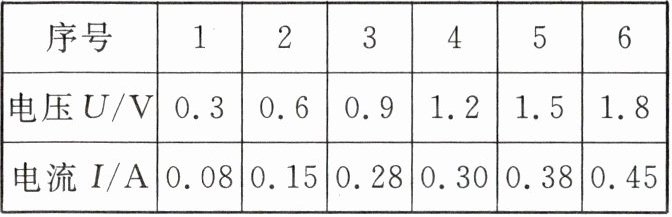 | 电压U/V | 0.3 | 0.6 | 0.9 | 1.2 | 1.5 | 1.8 |