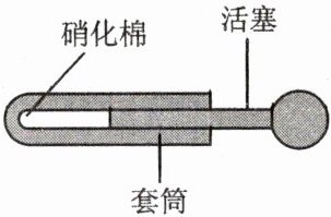 17. 取火器的模型如图所示,把活塞迅速推入套筒时,前端的硝化棉立刻燃烧起来,这是通过________的方式使筒内空气内能________,温度________,从而达到了硝化棉的着火点。