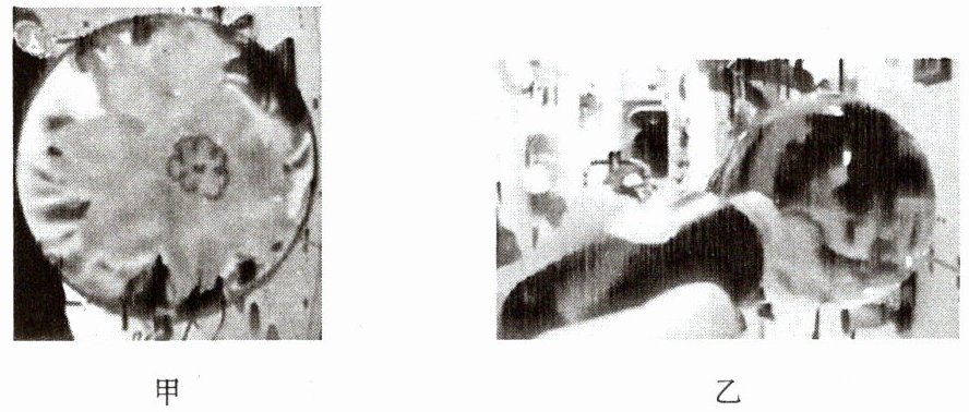 16. “太空教师”王亚平第二次进行太空授课,如图甲所示,她在水膜表面贴上她与女儿一起做的一朵花后,花朵“绚丽盛开”,而水膜也依然完好,这表明分子之间存在________;接着她往制作好的水球内注入少量蓝色颜料,水球很快变成了一个蓝色的水球,如图乙所示,这表明_________________________。