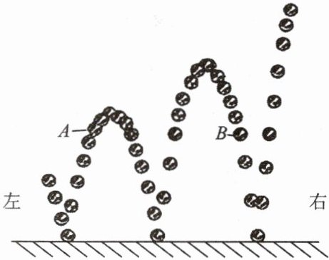 6. 下图是小球在地面弹跳过程的频闪图片,其中A处和B处等高。在此过程中,下列判断正确的是( )。