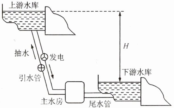 7. 混合式抽水蓄能电站是在用电低谷期用电能将水抽至上游水库,在用电高峰期再放水至下游水库发电的水电站,其工作原理如图所示。下列说法正确的是( )。