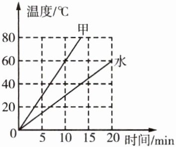 15. 用两个规格相同的电加热器给质量同为2 kg的物质甲和水加热,它们的温度随时间的变化关系如图所示,据此判断物质甲10 min吸收的热量为( )。