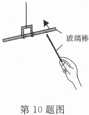10. 用丝绸摩擦两根玻璃棒,手持一根玻璃棒,靠近另一根被吊起的玻璃棒,关于该实验下列说法错误的是( )。
