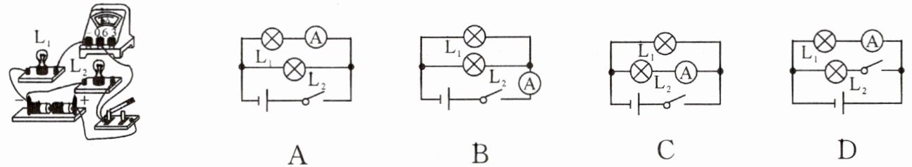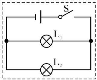 3. 按如图所示的实物图,在虚线框中画出对应的电路图。