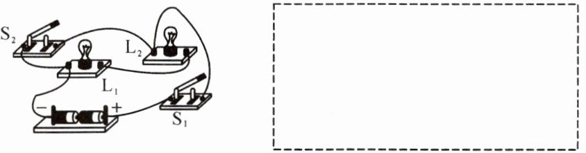 4. 按如图所示的实物图,在虚线框中画出对应的电路图。