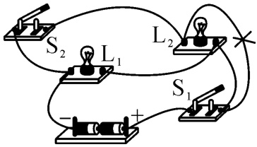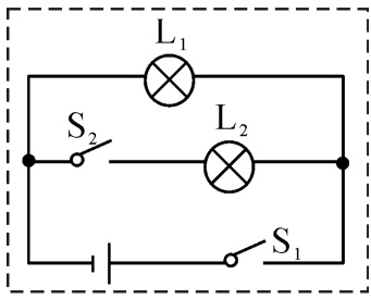 (2)只闭合$S_1$时$,L_1$发光$,L_2$不发光。