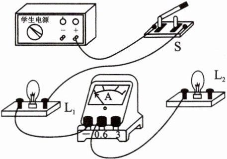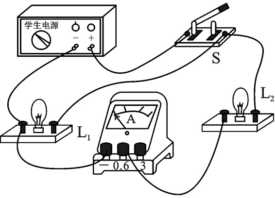 $(1)L_1$与$L_2$并联,电流表测通过$L_2$的电流。