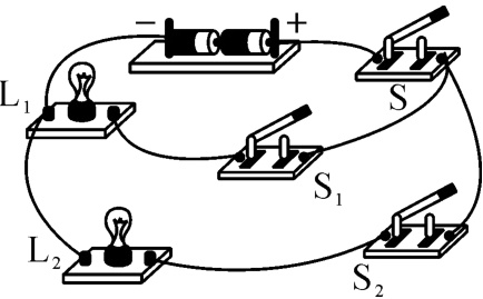 | 闭合S,断开$S_1、$$S_2 $|$ L_1、$$L_2$均不发光 |