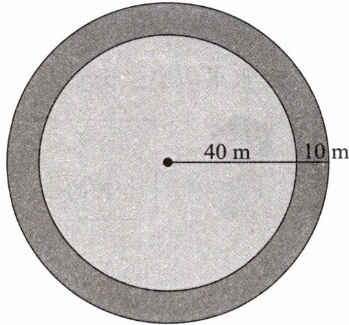 11. 一个圆形草坪的半径是$40m$,如果将它的半径加长$10m$,那么这个草坪的面积增加多少平方米?