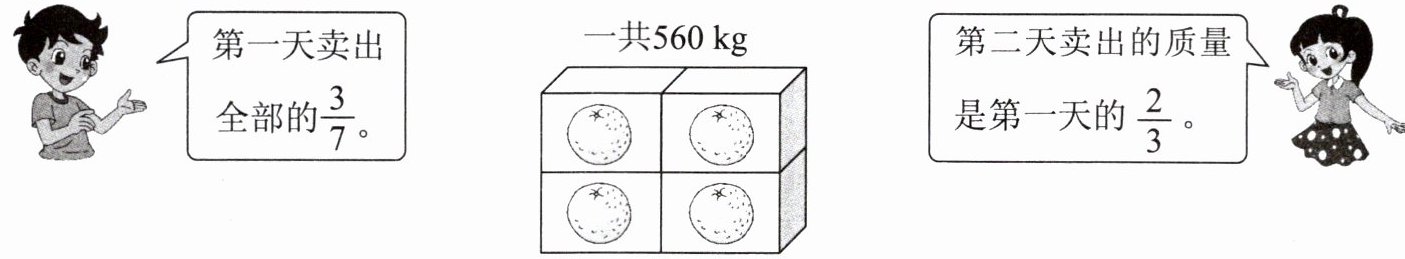 4. $560×\frac{3}{7}×\frac{2}{3}=160$(kg)