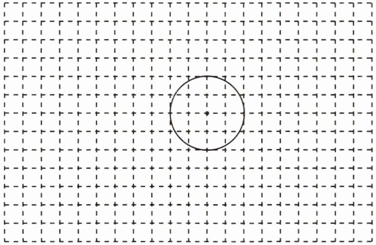 圆向左平移$6$格,圆心向左移动$6$格。找到原圆心,向左数$6$格确定新圆心,再以相同半径画圆。