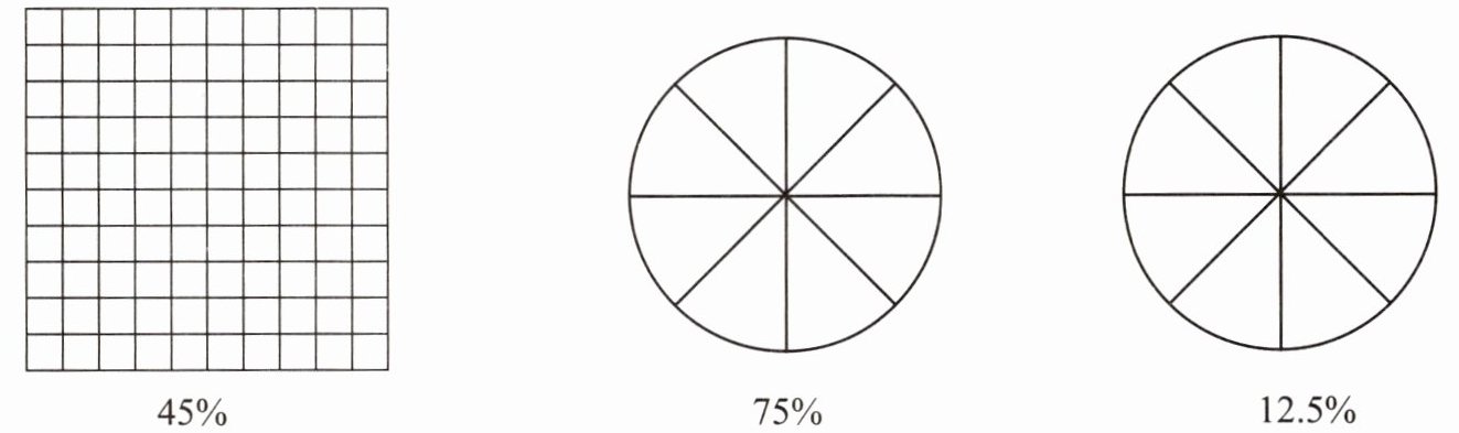 第三张图:圆形被等分为8份,涂色$8×12.5\%=1$份。
