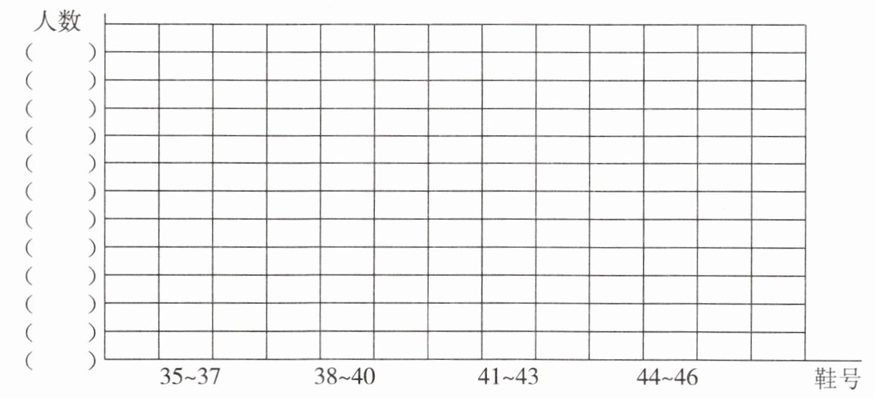 (此处需根据上述数据绘制条形统计图,由于文本限制无法直接呈现图形,实际作答时应在答题卡对应位置画出横轴为鞋号区间、纵轴为人数,分别用不同条形表示男女生人数的统计图。)
