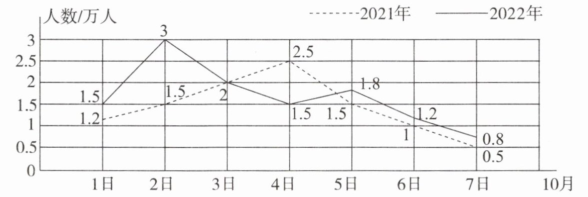 2. 下面是某市2021年和2022年“十一”黄金周假期某景区游客人数统计图。