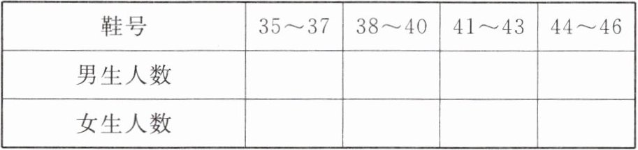 (2) (此处需根据上述数据绘制条形统计图,由于文本限制无法直接呈现图形,实际作答时应在答题卡对应位置画出横轴为鞋号区间、纵轴为人数,分别用不同条形表示男女生人数的统计图。)