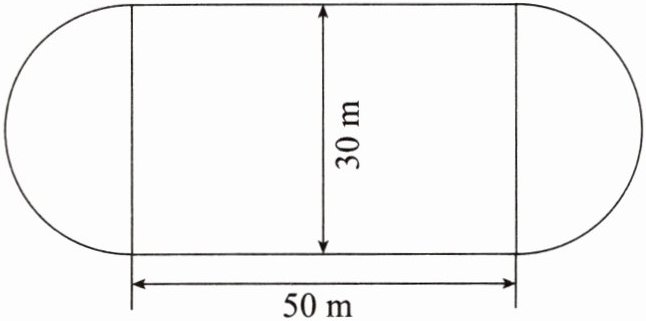 7. 一个运动场的形状与大小如图所示,它的两边都是半圆形,中间是长方形,这个运动场的占地面积是多少平方米?