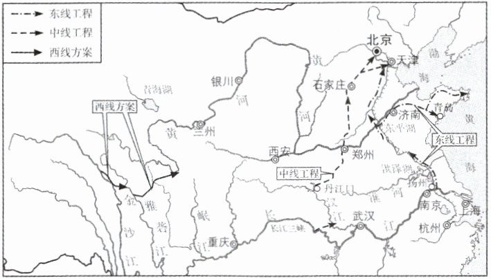 2.南水北调中线和东线都到达___平原,与我国南方地区相比,该地区缺水的气候原因是( )。