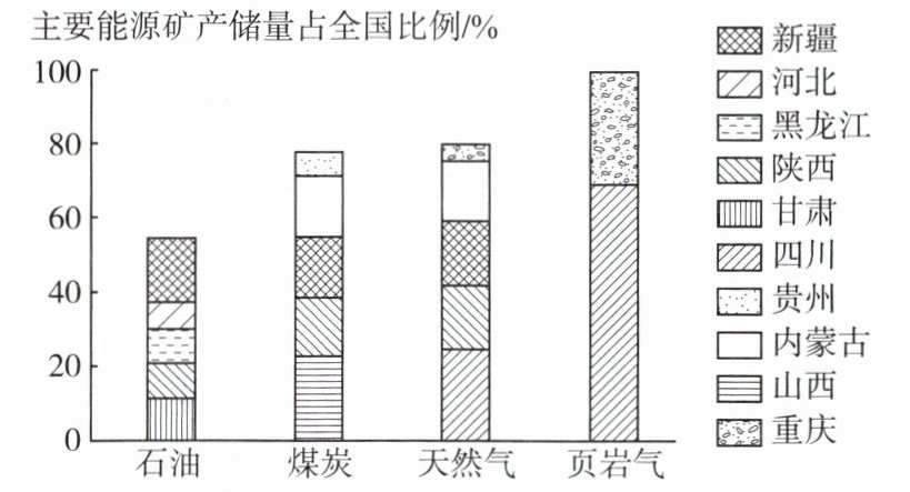 近年,我国不断推进矿业领域绿色发展,矿产资源的勘探开发取得重要进展。读我国已探明的主要能源矿产储量地区分布图(截至2021年底),回答1—3题。