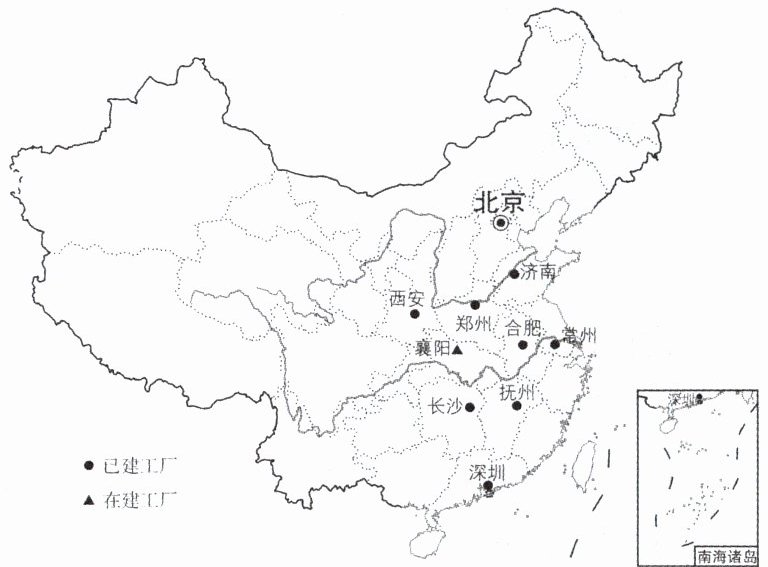 2.由图可知,该企业所属工厂在我国的分布特点是( )。
