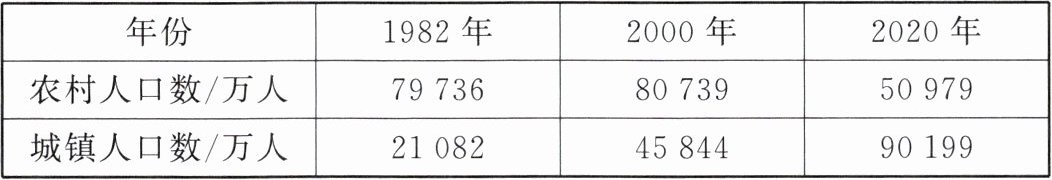表1 不同年份全国人口普查城镇人口数与农村人口数