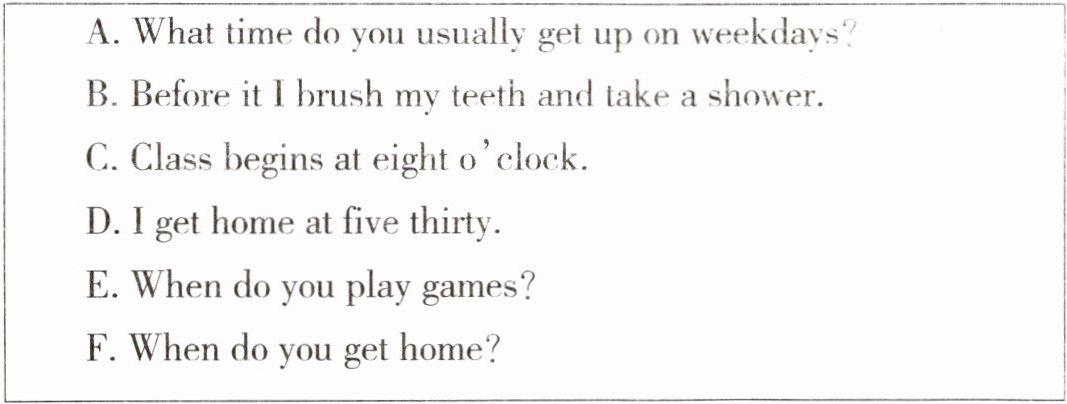 B: Well, I live near my school, so I get up at a quarter to seven. I never go to school late.
