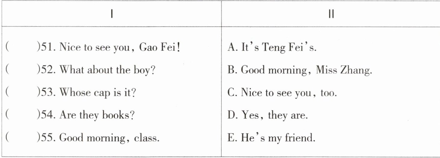 (A)从II栏中选择I栏中各句的相应答语。(5分)