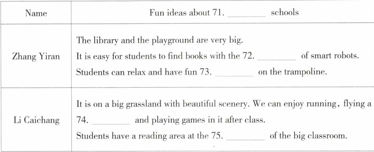 阅读短文,根据短文中的信息,完成下面的表格。(每空一词)(5分)