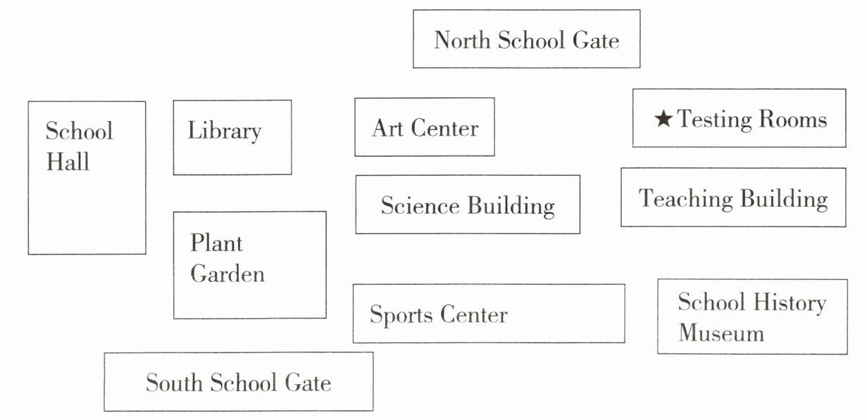 )42. You have to arrive at the testing room before ______ in the morning.A. 8:45 B. 9:00 C. 9:30 D. 9:35