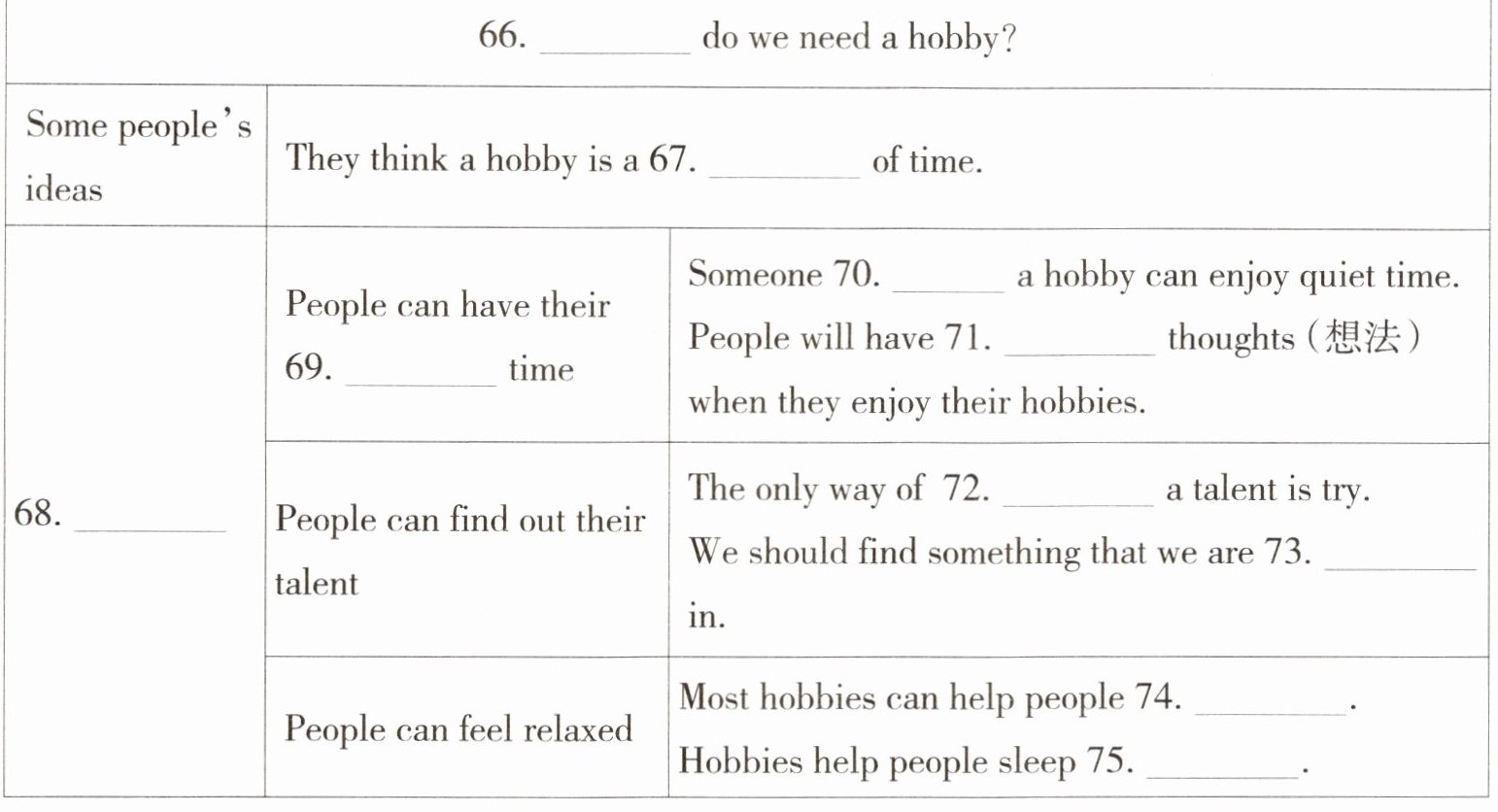 Some people see a hobby as a waste of time. They think a hobby is only something to pass the time. In fact, a hobby is much more than that. Its advantages( 优点) are as follows.