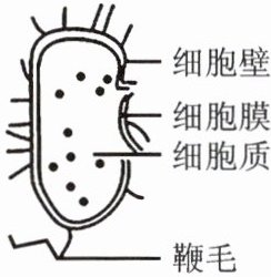 1. 某同学制作的细菌模型如图所示,其中明显缺失的是( )。