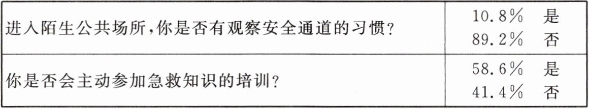 | 进入陌生公共场所,你是否有观察安全通道的习惯? | 10.8% 是 89.2% 否 |