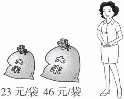 2. 王阿姨带$100$元去超市购物,她买了$2$瓶油,每瓶$25.8$元,还买了$0.9$千克鱼,每千克$23.8$元。剩下的钱够买一袋$23$元的大米吗?够买一袋$46$元的大米吗?