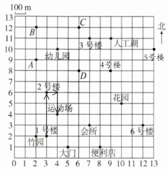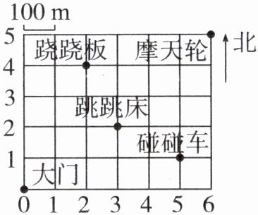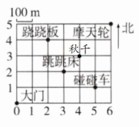 (2)请你在图中标出秋千的位置,秋千在大门以东400m,再往北300m处。