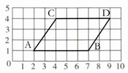 1. 请你在下面的方格图里描出下列各点,并把这几个点顺次连接成一个封闭图形,你能发现什么?$A(2,1)$ $B(7,1)$ $C(4,4)$ $D(9,4)$