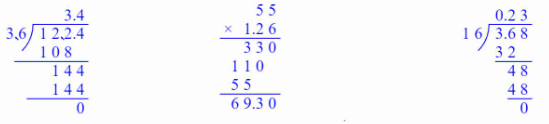 (1)$12.24÷3.6$ (2)$55×1.26$ (3)$3.68÷16$