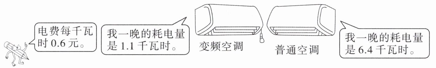 (2) 变频空调开一晚的电费是多少钱?
