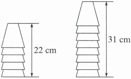 2. 如图, 5 个杯子叠起来高是 22 cm, 8 个杯子叠起来高是 31 cm。