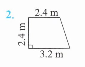 2.$(2.4+3.2)× 2.4÷ 2=6.72(m^2)$