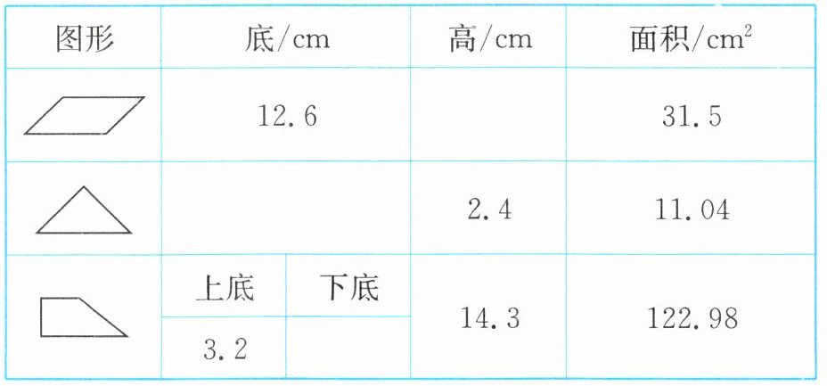 4. 一个平行四边形的底是 8 cm,高是 5 cm,它的面积是(