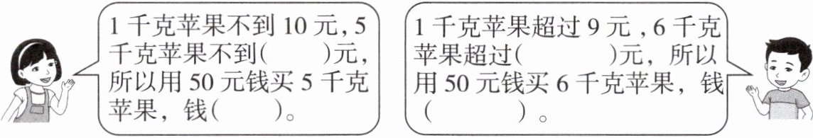 )元,所以用50元钱买5千克苹果,钱(够