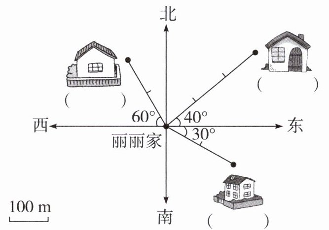 (4) 小华家在丽丽家的西偏南40°方向300m处。