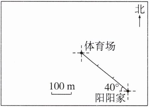 阳阳从家先向西偏北40°方向走300m到达体育场,再向正北方向走200m到达图书馆,最后向西偏南30°方向走400m到达学校。