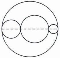 3. 甜甜看到一个有趣的图形,如右图,大圆的直径为$18\mathrm{cm}$,已知三个小圆的半径之比为$2:3:1$,最小的圆的半径是(