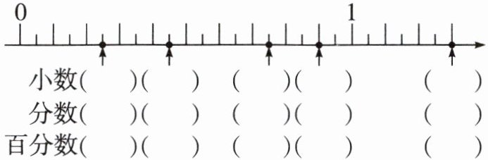 四、我会写。(分别用小数、分数和百分数表示下面直线上的点)