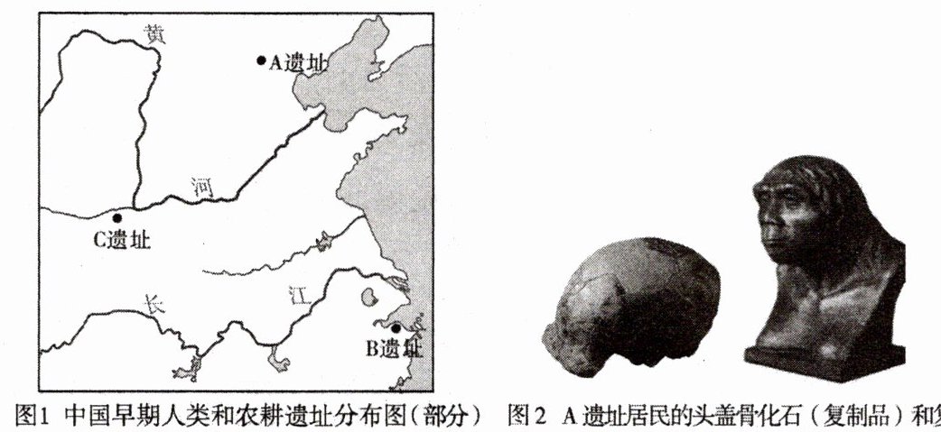 (1)根据材料一,写出A遗址、B遗址、C遗址的名称。